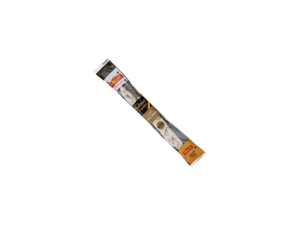 SLOŽENÍ: Vepřové maso, LAKTÓZA, divoký Tuber aestivum (2 %), sůl, sušené MLÉKO, koření, dextróza, šťáva z Tuber aestivum, antioxidant (E-301), konzervanty (E-250, E-252), aroma, fermentační látky kyseliny mléčné