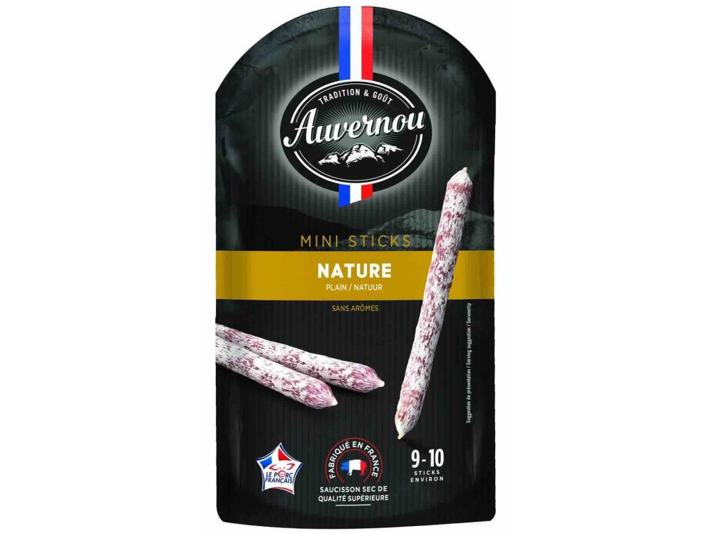 SLOŽENÍ: Vepřové maso (původ Francie)*, laktóza(MLÉKO), sůl, pepř, cukr, dextróza, česnek, muškátový OŘÍŠEK, konzervanty: dusičnan draselný a dusitan sodný, hřebíček, enzymy, střívko (kolagenní střevo).