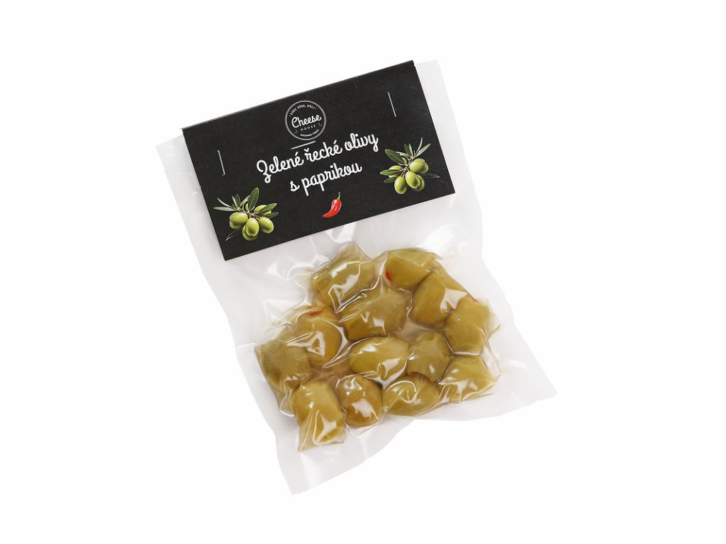 Zelené vypeckované olivy s paprikou 100g
